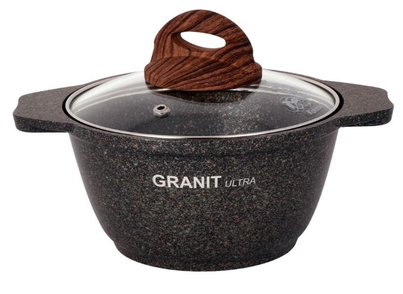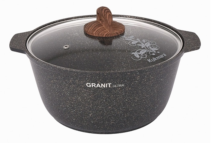 Кастрюля Кукмор Granit ultra original, антипригарное покрытие стеклянная крышка