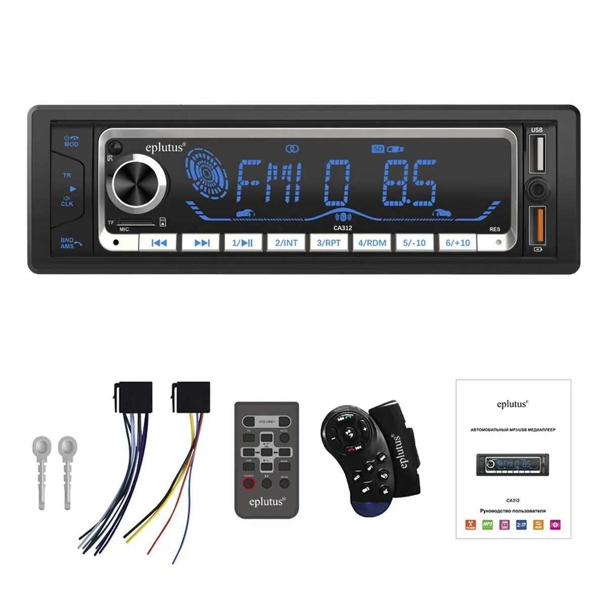 Автомагнитола CA312 Bluetooth 45Wx4 24V-12V Eplutus