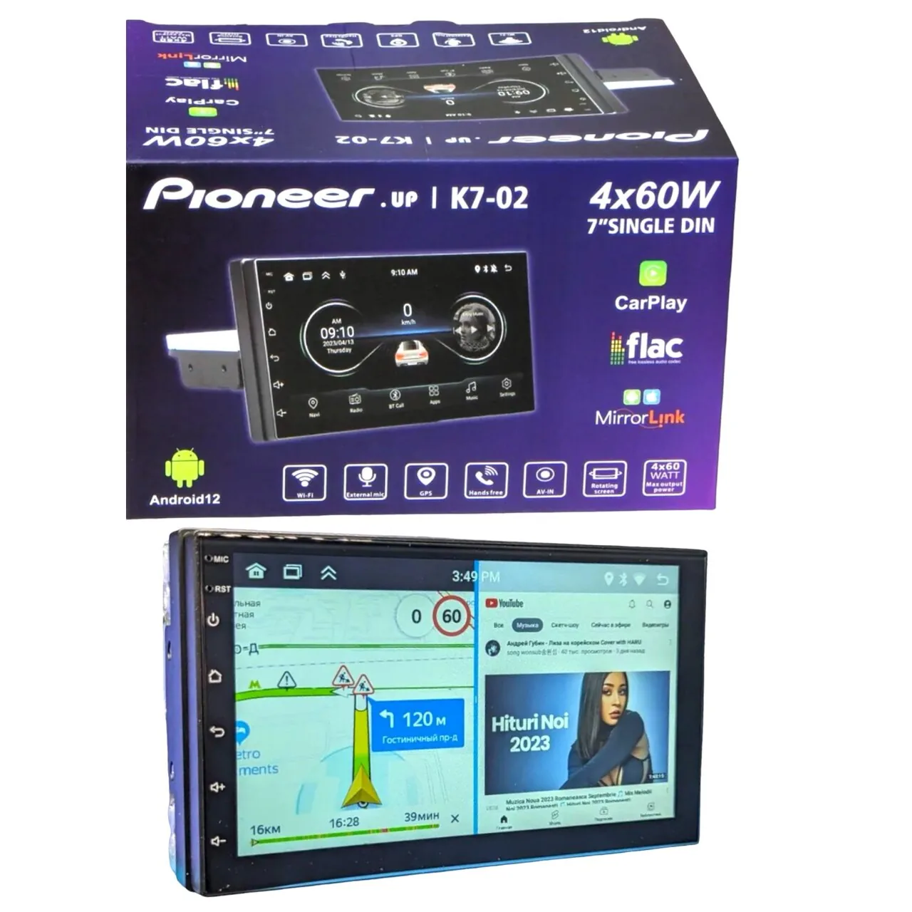 Автомагнитола K7-02 Pioneer 1-дин 7" Экран / Android 12 / 2+32GB / GPS / WI-FI