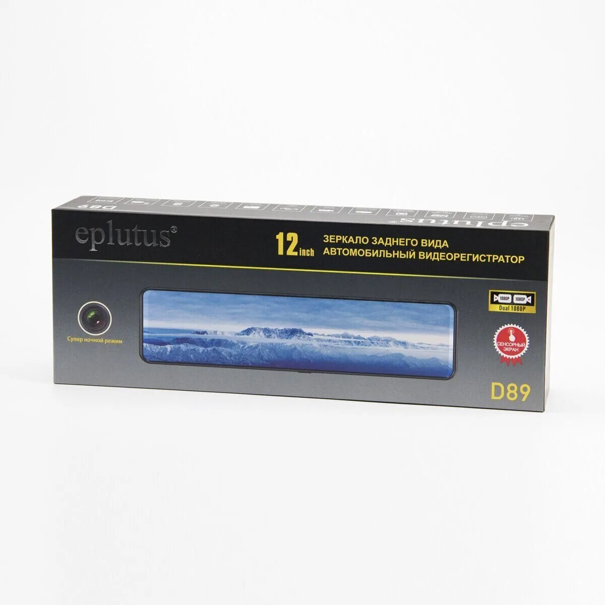 Видеорегистратор-зеркало с 2-мя камерами 1080P и 12" сенсорным экраном D89 Eplutus