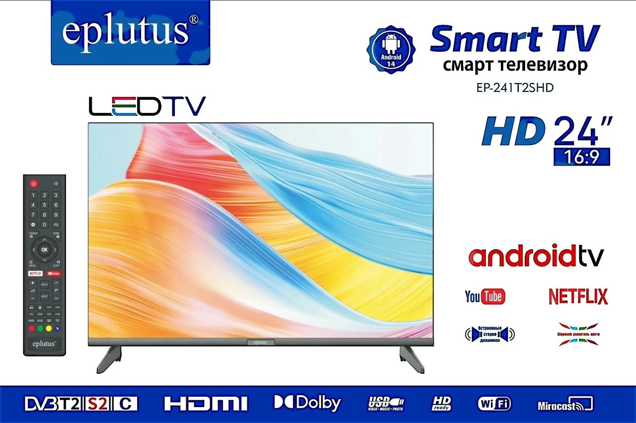 Телевизор EP-241T2SFD Smart TV HD 24" 1+8 GB Android 14