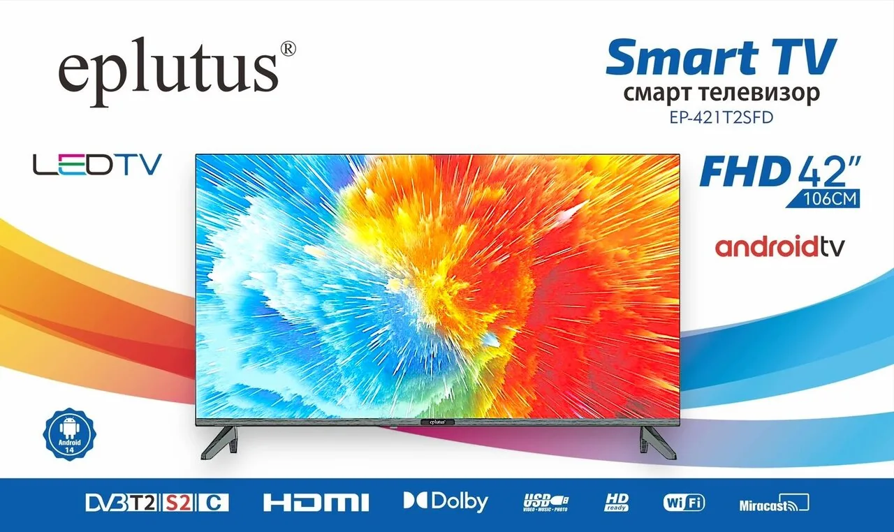 Телевизор EP-421T2SFD Smart TV 42" 106см 1+8 GB Android 14